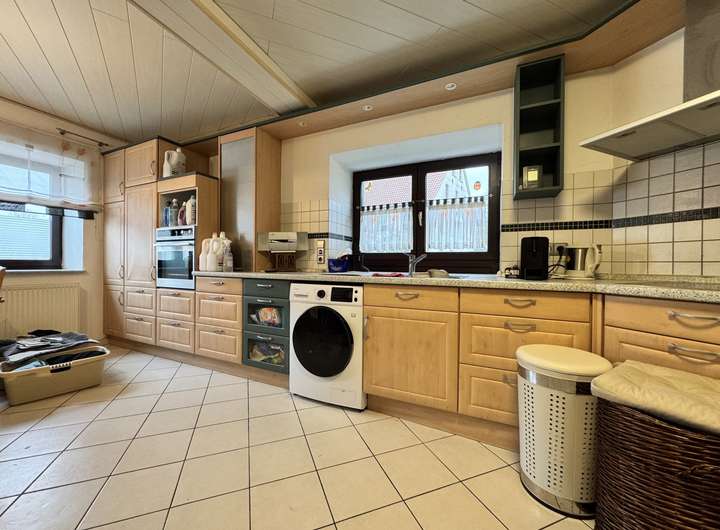 Die zweckmäßige Lage des Hauses bietet aufgrund der Kombination aus Wohn- und Gewerbefläche zahlreiche Möglichkeiten für Unternehmer und Selbstständige, die nach einem ortsnahen Wohn- und Arbeitsumfeld suchen. Auch große Familien oder Mehrgenerationen-Haushalte finden hier ausreichenden Wohnraum und Gestaltungsspielraum.