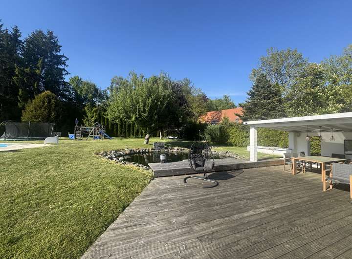 • Weitere Highlights: Whirlpool, überdachte Terrasse, Spielturm, Trampolin