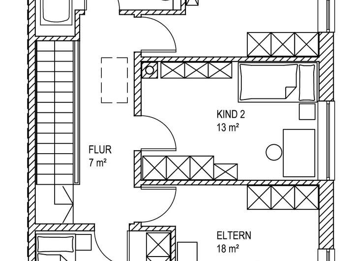 Massivholzparkett in allen Wohn- und Schlafräumen,