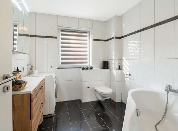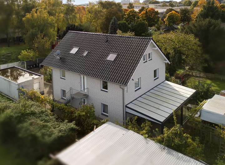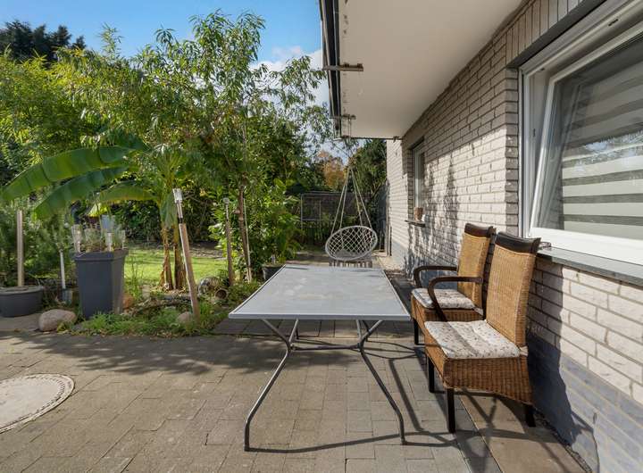 Auf dem 690 Quadratmeter großen, gepflegten Grundstück können Sie gemeinsam mit der Familie entspannte Stunden im Freien verbringen. Die ruhige Lage des Hauses sorgt dafür, dass Sie hier entspanntes Wohnen in zentraler Lage genießen können.