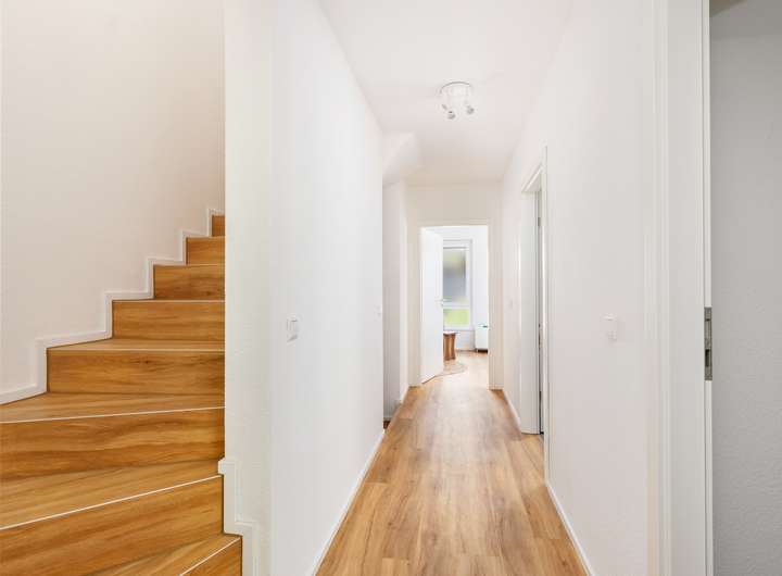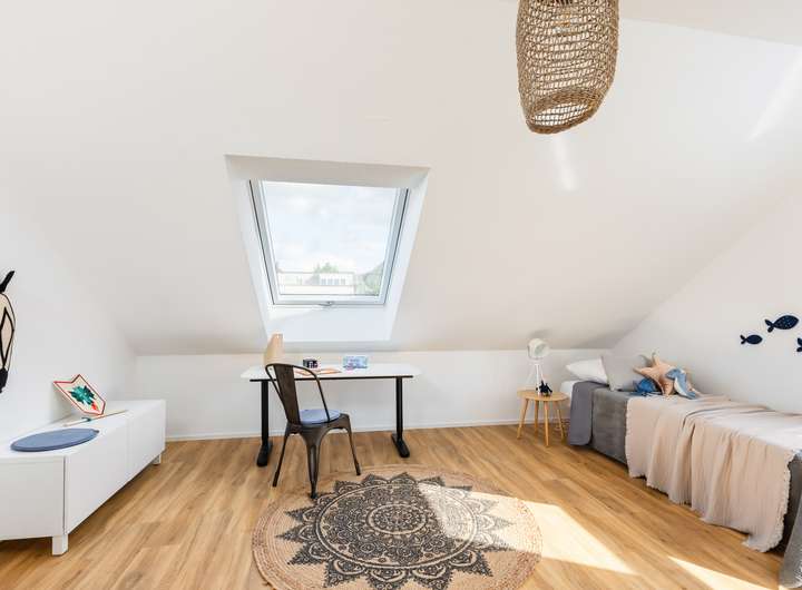 Dieses einladende Haus bietet auf 144 m² großzügigen Wohnkomfort. Mit 5 Zimmern, darunter 4 helle Schlafzimmer, einer Küche, einem großen Wohnzimmer sowie einem Abstellraum im Dachgeschoss lädt es zu einem harmonischen Familienleben ein. Ein hochwertiger Vinylboden sorgt für eine warme Atmosphäre, während elektrische Rollläden optimalen Sonnenschutz gewährleisten.