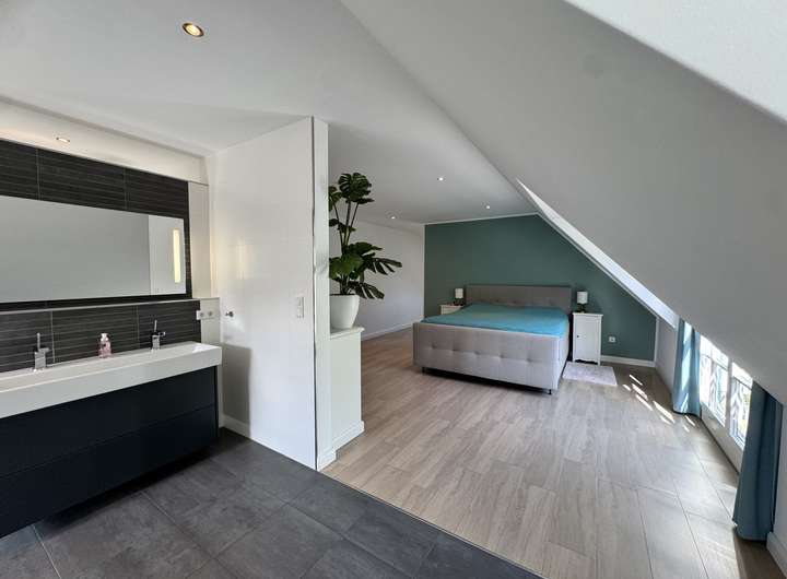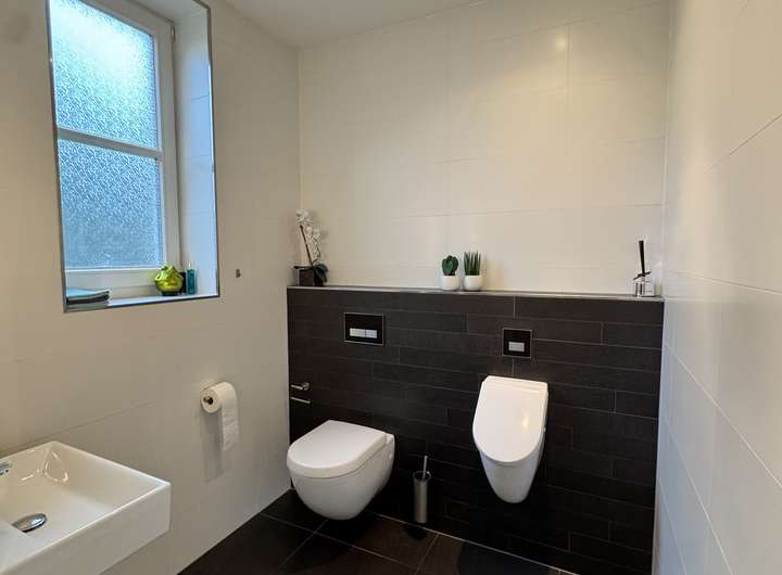 Sanitäreinrichtungen von Villeroy & Boch und Laufen, Glasfaseranschluss sowie viele weitere Ausstattungsdetails runden das hochwertige Gesamtbild ab.