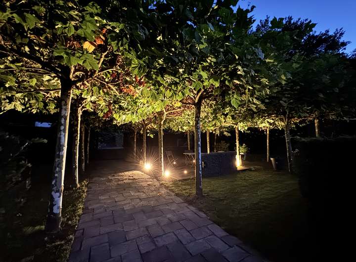 Der großzügig angelegte Garten unterstreicht den Charakter des Hauses. Dank eigenem Brunnen und automatischem Bewässerungssystem ist er besonders pflegeleicht. Ein großer Teich sowie ein charmantes Gartenhaus (4 × 6 m) machen das Grundstück zu einem Ort der Erholung.