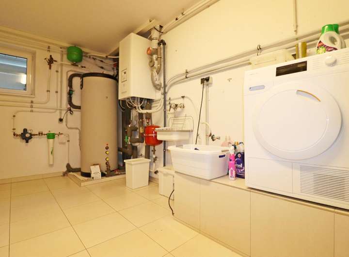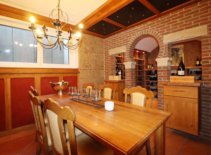 Der hochwertig ausgebaute Keller des Hauses begeistert mit einem exklusiven Weinkeller, der selbst anspruchsvollste Weinliebhaber überzeugt. Darüber hinaus gibt es einen großzügigen Hobby- und Wellnessraum, welcher auch als Gästezimmer genutzt werden kann und offiziell als Wohnfläche ausgewiesen ist. Ein Hauswirtschaftsraum, der als Wasch- und Heizraum dient, rundet das Raumangebot ab.