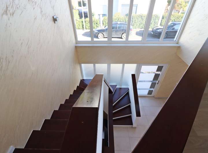Dieses beeindruckende Haus wird über eine moderne Luftwärmepumpe via Fußbodenheizung beheizt, die für Energieeffizienz sorgt. Die Böden sind mit hochwertigen Fliesen und Laminat ausgestattet, während dreifach verglaste Fenster mit elektrischen Rollläden höchsten Komfort bieten. Das abrundende Highlight ist der Carport mit Platz für zwei Autos.