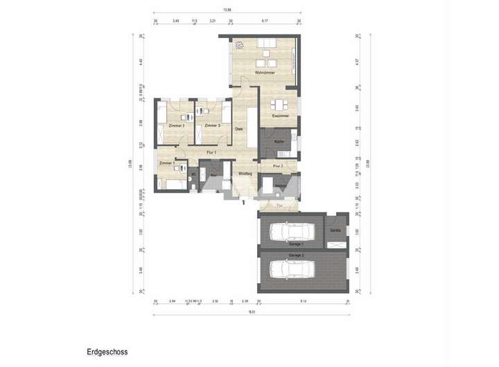 Dieses Einfamilienhaus teilt sich, wie folgt, auf: