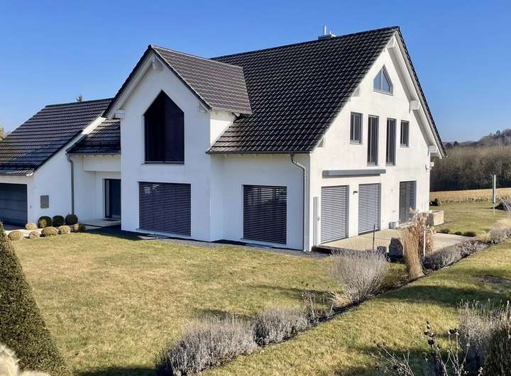 Das ansprechende, zweigeschossige Einfamilienhaus KG+EG+DG zeichnet sich durch eine gehobene und zeitlose Innenausstattung aus und steht ab jetzt zum Verkauf. Das Objekt besteht aus fünf hübschen Zimmern, einem Badezimmer und einem separaten Gäste-WC. Im Obergeschoss befinden sich Bad/Sauna, Schlafen/Ankleide, Kind 1 und Kind 2, diese erreicht man über die im Wohnbereich integrierte Treppe. Das Objekt stammt aus dem Jahr 2008. Ihnen stehen außerdem eine geräumige Doppelgarage für Ihre Autos zur Verfügung. Für Platz zum Gärtnern, Spielen oder zum Barbecue mit Freunden: Auf den 1167 Quadratmetern des dazugehörigen Grundstücks können Sie entspannen.
