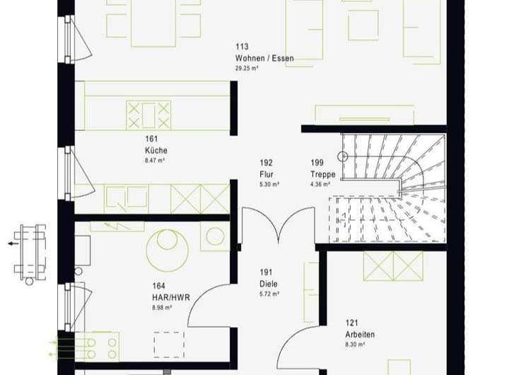 Über 100 verschiedene Hausvorschläge, die noch individuell planbar sind. Sie können aus verschiedenen Ausbaustufen wählen.