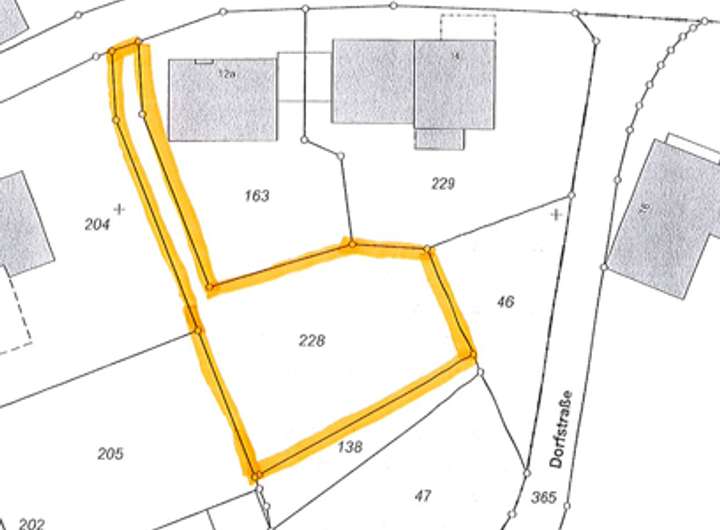 Grundsätzlich könnten sich die Eigentümer des Flurstücks 229 auch optional vorstellen, eine weitere Zuwegung für das zu vermarktende Grundstück (Flurstück 228) über ihr Grundstück zu ermöglichen und eine Zuwegungsbaulast eintragen zu lassen oder den entsprechenden Grundstücksteil zu veräußern.