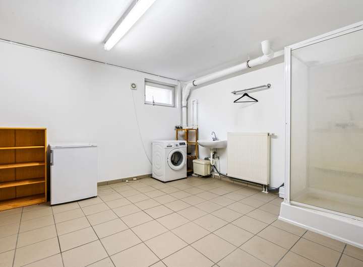 Der geflieste Keller bietet mit einer Deckenhöhe von 2,40m zusätzlichen Wohnkomfort und ist mit einer weißen Wanne gegen Feuchtigkeit geschützt. Der größere Kellerraum (ca. 27m²) bietet sich ideal als Fitnessraum, als Zimmer mit wohnraumähnlicher Nutzung oder als Homeoffice-Möglichkeit an. Der kleinere Kellerraum (ca. 16,50m²) qualifiziert sich als Waschküche und ist mit einer Dusche und einem Waschbecken ausgestattet.