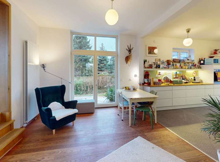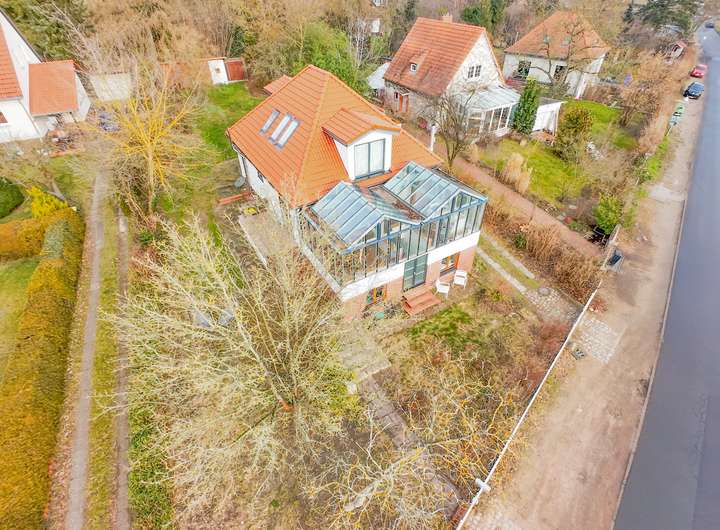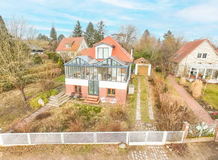 Dieses charmante und gepflegte Einfamilienhaus mit Wintergarten, großem Garten und Garage bietet ein einzigartiges Wohnerlebnis in idyllischer und familienfreundlicher Lage in Berlin-Gatow. Ursprünglich als Bungalow im Jahr 1934 erbaut, wurde das Haus 2018 um ein Obergeschoss erweitert und verbindet nun historischen Charme mit modernem Wohnkomfort. Mit einer großzügigen Grundstücksfläche von ca. 1.040 m² und einer Wohnfläche von etwa 180 m² bietet das Haus sechs geschmackvoll gestaltete Wohn- und Schlafzimmer und eignet sich perfekt für Familien, die naturnah und dennoch gut angebunden wohnen möchten.