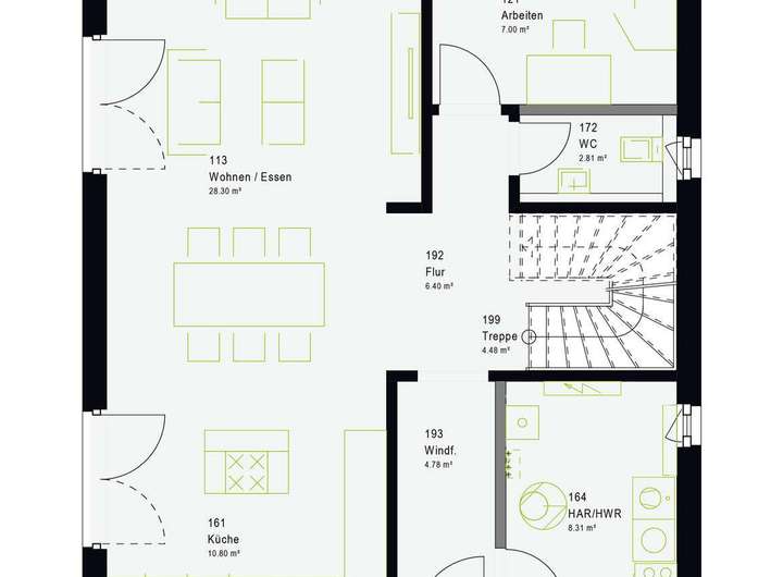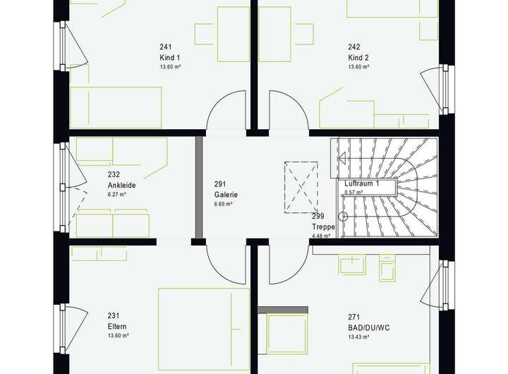 Das Massa Haus verfügt über 5 Zimmer und luftige 145qm Netto-Wohnfläche. Die Raumaufteilung übernehmen Sie nach Ihren eigenen Wünschen.