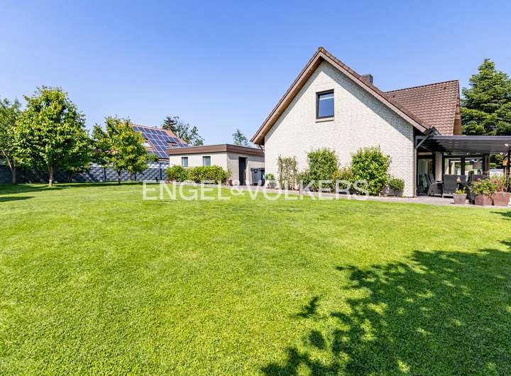 Während zwei stilvolle Bäder den Alltag erleichtern, sorgt ein Dachboden für wertvollen zusätzlichen Stauraum. Draußen locken eine überdachte Terrasse in Südausrichtung, eine teilüberdachte Terrasse in Westausrichtung, sowie ein gepflegter Garten mit einem Gartenhaus – ideal für Hobbygärtner oder auch einfach als Rückzugsort, um Kraft zu schöpfen. Dieses Haus bietet alles, was das Herz begehrt: Raum für die Familie, eine hochwertige Ausstattung inklusive des umfangreichen Inventars, das vom Mobiliar über die Dekoration bis hin zu Elektro- und Gartengeräten reicht! Der Außenbereich lädt durch seine großzügige Dimensionierung, aber auch durch seine liebevolle Gestaltung zum Entspannen und Genießen ein. Überzeugen Sie sich selbst – hier möchten Sie nicht nur wohnen, sondern leben!