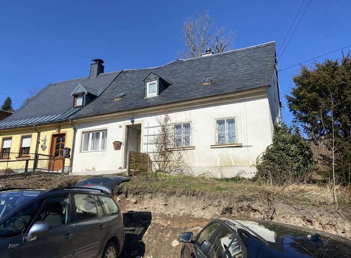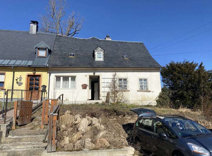 Zum Verkauf steht eine Doppelhaushälfte mit Geschichte – ein ehemaliges Bergmannshaus aus ca. 1880, das sich in ruhiger Randlage von Eibenstock befindet. Das Besondere: Der hintere Teil des Hauses wurde direkt in die Hanglage integriert, wodurch einige Räume eine kellerähnliche Funktion übernehmen.