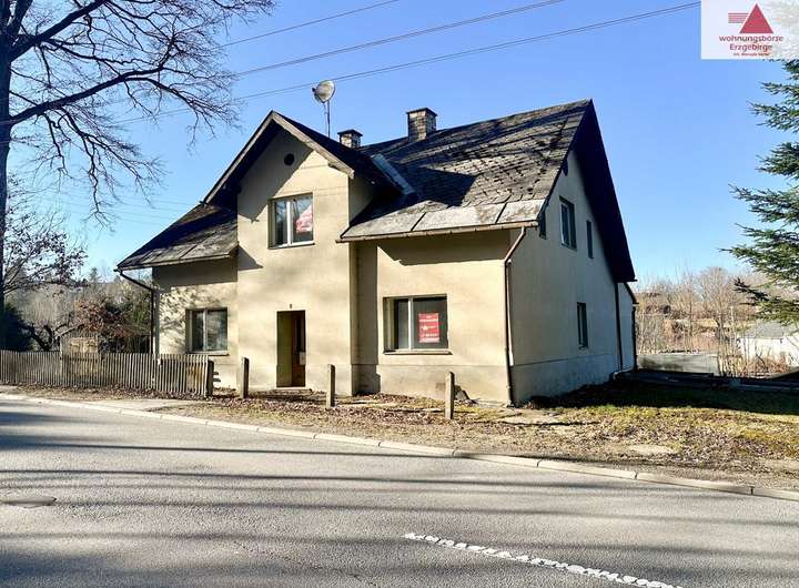 Zum Verkauf steht eine um 1890 erbaute, freistehende Immobilie als Einfamilienhaus in ländlicher und dennoch verkehrsmäßig gut angebundener Lage der kleinen Erzgebirgsgemeinde Tannenberg. Das massiv errichtete Gebäude besteht aus Erd- und Obergeschoss, Spitzboden als Abstellfläche und ist teilunterkellert. Auf einer Grundstücksfläche von ca. 890 m² befinden sich neben dem Hauptgebäude eine Doppelgarage und ein Anbau, nutzbar als Abstellfläche.