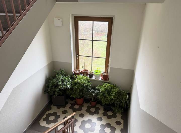 Die Wohnung befindet sich im 2. OG, ohne Aufzug, aber wer braucht schon den Lift, wenn das tägliche Treppensteigen die Beine fit hält?