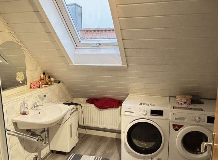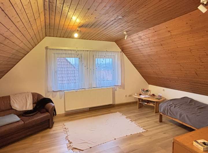 Diese großzügige Wohneinheit erstreckt sich über das 1. Obergeschoss und das Dachgeschoss und wird ab Februar frei.