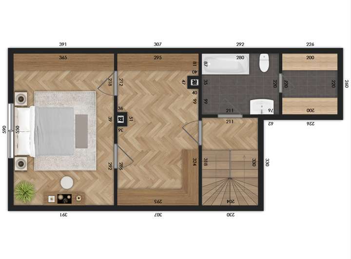 Erdgeschoss aktuell vermietet für 10,20 €/m² (6.000€ pro Jahr). Die Wohnung im 1. OG mit DG kann ab März neu vermietet werden.