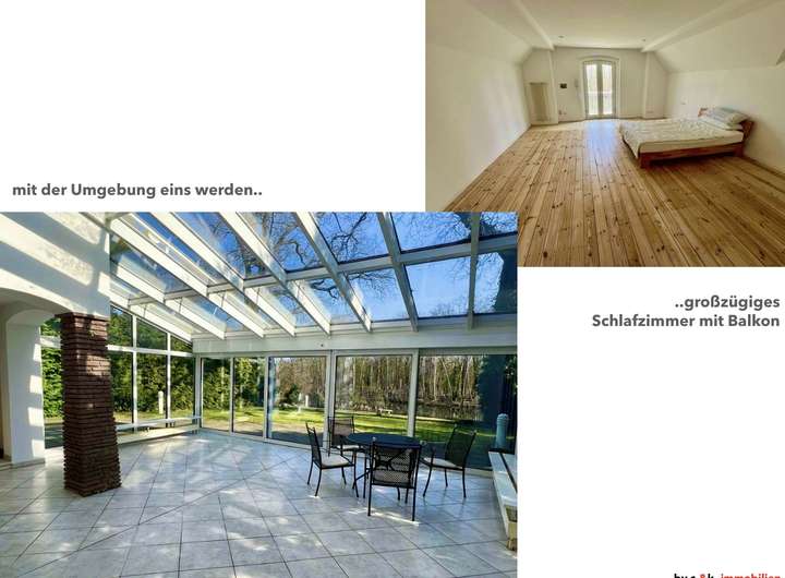 Das exklusive Anwesen in einer Villenkolonie direkt an der Stadtgrenze von Berlin, Ihr neues Zuhause direkt vor den Toren der Hauptstadt! Gelegen in einer Oase von Grün, Wasser und historischen Orten, bietet das Objekt hohe Wohnqualität. Geniessen Sie die Ruhe, die Natur, das Flair im Südwesten von Berlin und die Exklusivität der Umgebung und nutzen Sie dennoch die unmittelbare Nähe zur Metropole. Neben dem unverbaubarem Blick auf See und Flora bietet das Objekt viel Platz, flexible Gestaltungsmöglichkeiten und eine reizvolle Mischung aus Klassik und Moderne.