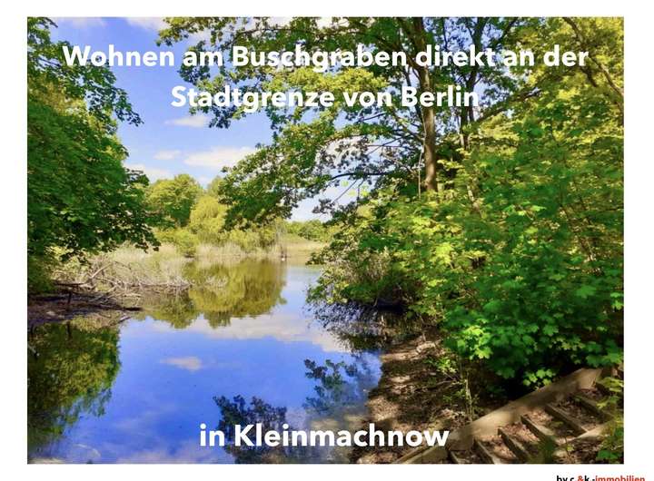 Gelegen in einer Villenkolonie direkt am idyllischen Buschgraben (kleiner See) mit UNVERBAUBAREM See- und Naturblick, verortet sich das Anwesen DIREKT an der Stadtgrenze Kleinmachnow/Berlin.