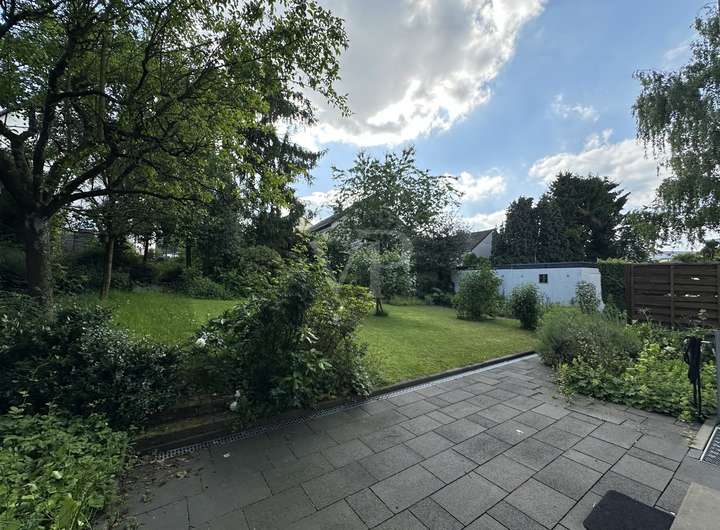 Eine ca. 25 m² große Terrasse bietet zusätzlichen Platz im Außenbereich, der sich für gesellige Abende oder entspannte Stunden im Freien eignet. Der Garten bietet zudem genügend Platz für verschiedene Gestaltungsmöglichkeiten im Garten.