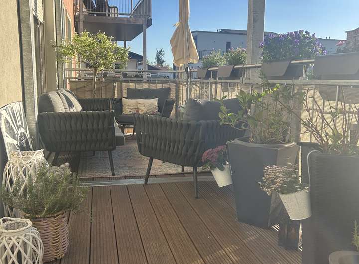 Die helle und großzügig geschnittene Wohnung mit hohen Decken verfügt über einen großzügigen Süd-West-Balkon, abgehend vom ruhigen Hinterhaus, so dass Sie dort die ländliche Ruhe genießen und die Seele bis in die Abendstunden baumeln lassen können.