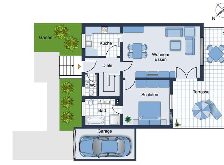 Dieses Exposé ist eine Vorinformation, da als Rechtsgrundlage allein der notarielle Kaufvertrag maßgebend ist. Alle genannten Angaben zum Objekt beruhen auf Angaben des Eigentümers. Somit kann die giv GmbH für Richtigkeit und Vollständigkeit keine Haftung übernehmen. Die Grundrisszeichnungen in diesem Exposé sind nicht maßstabsgetreu und dienen lediglich der Vorabinformation.