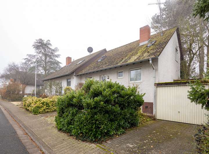 Die im Jahr 1981 erbaute Doppelhaushälfte befindet sich auf einem ca. 490 m² großen Grundstück in guter und ruhiger Wohnlage. Die Immobilie überzeugt u.a. durch ein großes Wohnzimmer mit anschließender Terrasse und einem schönen, nicht einsehbaren Garten. Das Haus ist in massiver Bauweise errichtet worden.