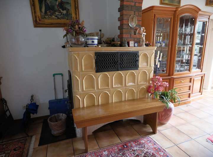 Der Kaminofen beheizt das ganze Erd- und Obergeschoss.