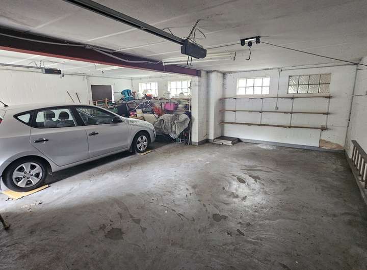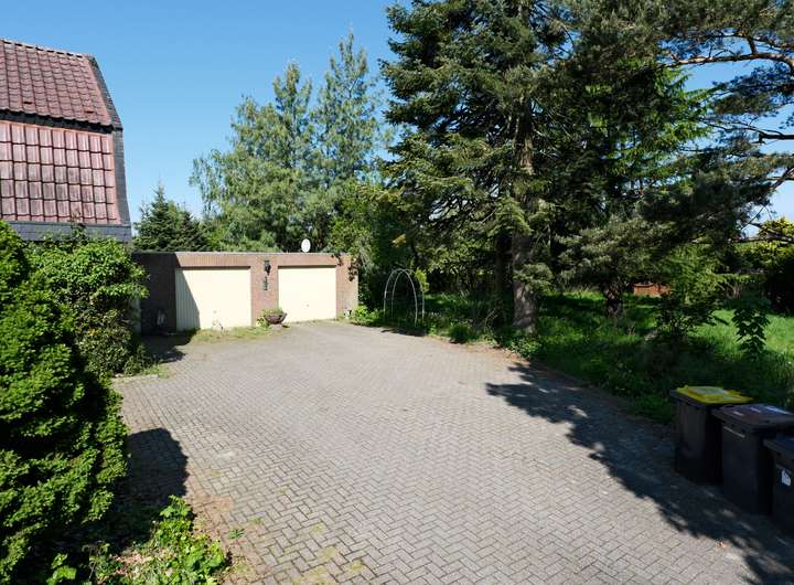 Garage: Doppelgarage mit Türe zum Garten und mehrere Stellplätze vor der Garage.