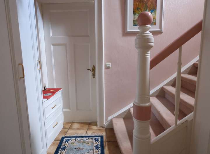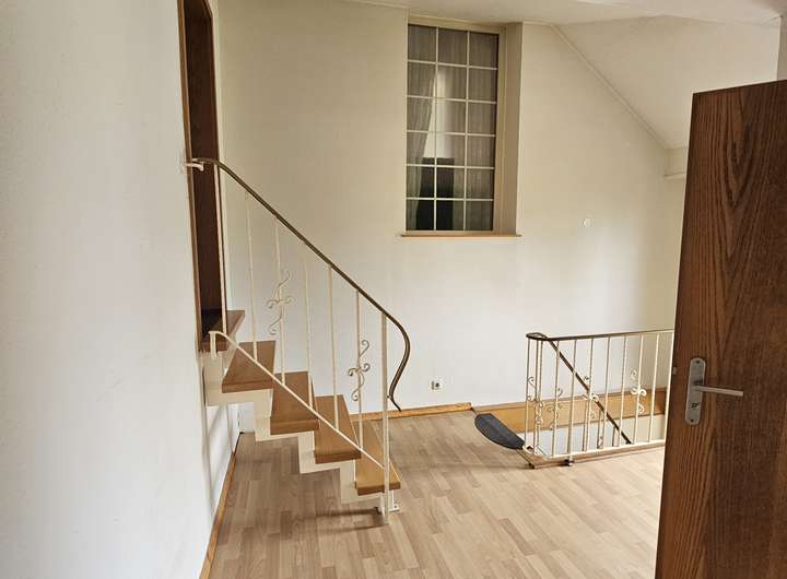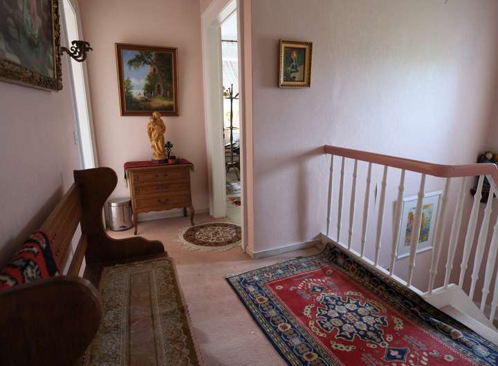 Oben sind zwei Schlafzimmer und ein Bad. Vom Flur aus erreicht man den Balkon und leitet eine kleine Treppe zu einem Kinderzimmer. Die Einliegerwohnung kann man vermieten, kann aber auch als Ferienhaus oder Praxis dienen. (oder selbst bewohnen und wieder mit dem Haupthaus verbinden)