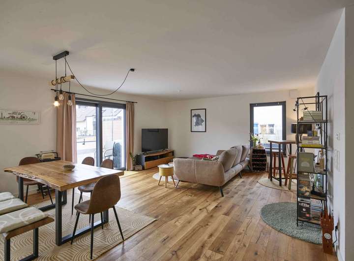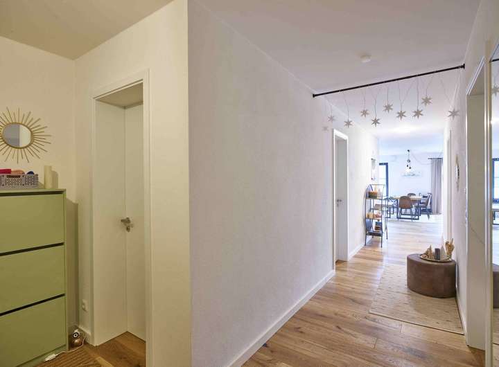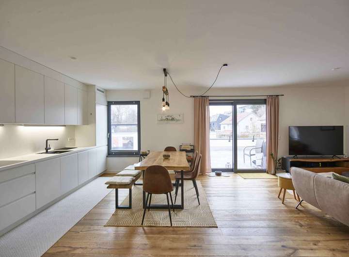 Diese exklusive und neuwertige 3-Zimmer-Wohnung mit einer Wohnfläche von ca. 109,71 m² befindet sich im Erdgeschoss einer Wohnanlage - bestehend aus insgesamt nur sieben Wohneinheiten - welche im Jahr 2024 in Massivbauweise fertiggestellt wurde. Das Gebäude wurde als Energieeffizienzhaus KFW 55 errichtet.