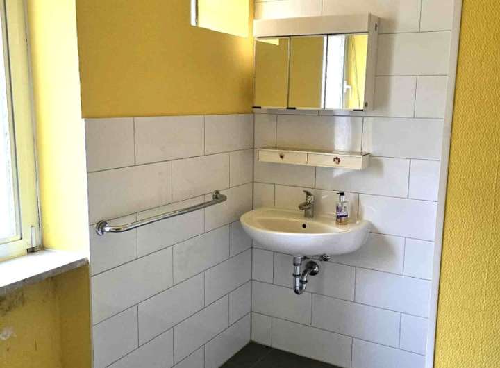 Im EG befinden sich aktuell 2 Zimmer, eine große Wohnküche, ein Duschbad, ein Flur und ein WC.