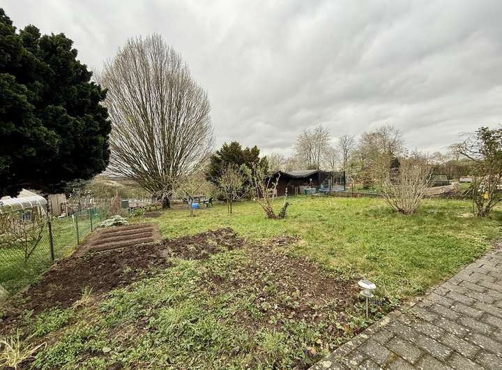Der Garten bietet eine ruhige Rückzugsmöglichkeit und wurde in den letzten Jahren kontinuierlich instand gehalten. Durch die vorteilhafte Feldrandlage genießt man eine ruhige Wohnatmosphäre, während gleichzeitig eine gute Anbindung an öffentliche Verkehrsmittel und Autobahnen gegeben ist. Geschäfte des täglichen Bedarfs befinden sich in unmittelbarer Nähe, was den Wohnkomfort zusätzlich erhöht.