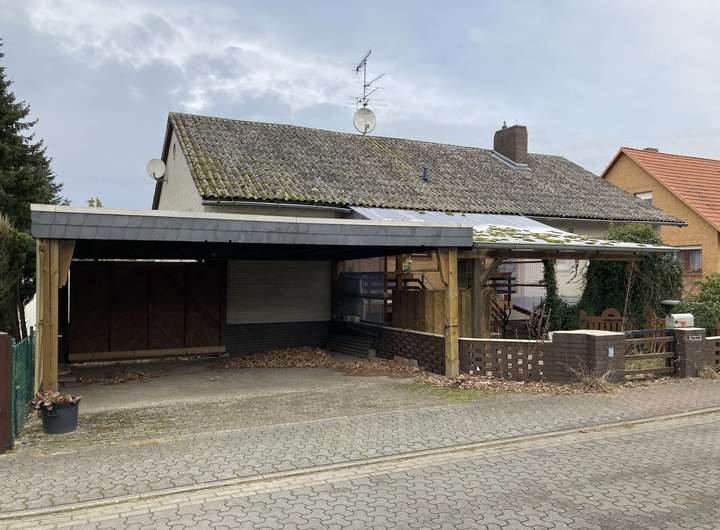 Dieses freistehende Einfamilienhaus mit Nebengebäude und Doppel-Carport befindet sich in einem Wohngebiet der Gemeinde Ummern (Samtgemeinde Wesendorf, Landkreis Gifhorn, Niedersachsen).