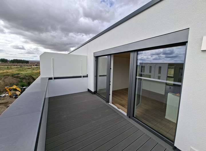 - Eigene Terrasse mit WPC-Dielen und angerenzendem, eingezäunten Garten