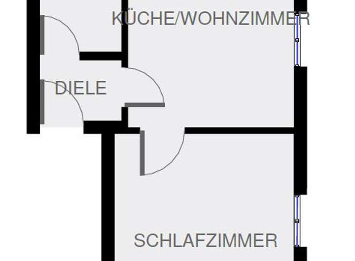 1-Zimmer-Wohnung mit Wohnküche ohne Einrichtung, Tageslichtbad mit Dusche und WC, Flur, Kellerraum und Kabelanschluss. Die Wohnung wird mittels Zentralheizung beheizt.