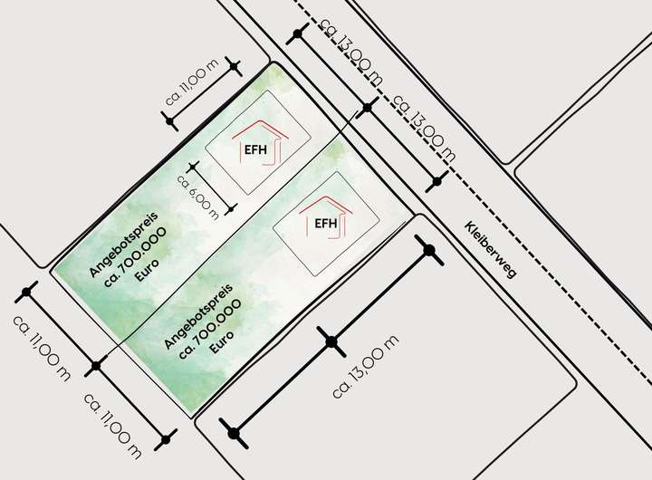 Es besteht auch die Möglichkeit, das gesamte Grundstück mit einer Fläche von 1.200 m² für 1.400.000 Euro VB zu erwerben. Mit dieser großzügigen Fläche haben Sie die Freiheit, ein riesiges Doppelhaus oder ein Einfamilienhaus mit einer beeindruckenden Grundfläche von über 100 m² zu realisieren.