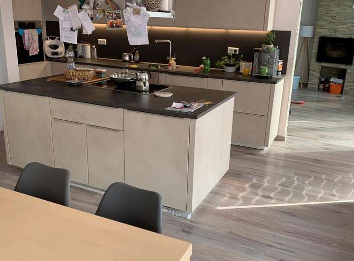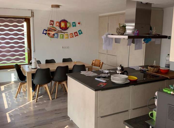 Moderne Wohnküche und durchdachte Raumaufteilung: Willkommen in dieser einladenden offenen Wohnküche, die im Herzen des Hauses liegt und Funktionalität mit Gemütlichkeit vereint. Der harmonische Übergang zum angrenzenden Wohnzimmer, das ohne Tür an die Küche anschließt, schafft eine angenehme Atmosphäre für gesellige Kochabende und entspannte Stunden mit Familie und Freunden. Die Küche ist ideal mit dem Essbereich kombiniert und bietet somit den perfekten Rahmen für gesellige Zusammenkünfte.