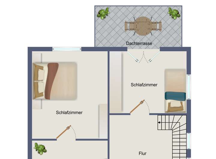 - Schlafzimmer mit Zugang zur Dachterrasse