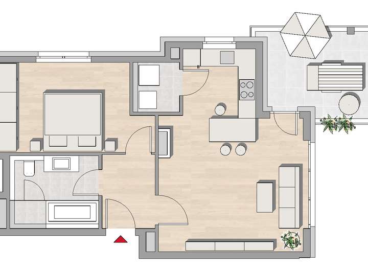 Das Gebäude wird in solider Mauerwerksbauweise errichtet und erfüllt alle Anforderungen gemäß GEG 2024. Fundamente und Bodenplatte werden in Beton ausgeführt. Die Außenwände sowie die tragenden Innenwände werden aus Kalksandstein bzw. Stahlbeton hergestellt. Die Geschossdecken und Geschosstreppen sind ebenfalls aus Stahlbeton gefertigt. Sie werden mit polierten Granitstufen belegt. Auf das Außenmauerwerk wird ein Wärmedämmverbundsystem (WDVS) aufgebracht.