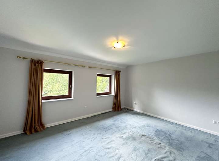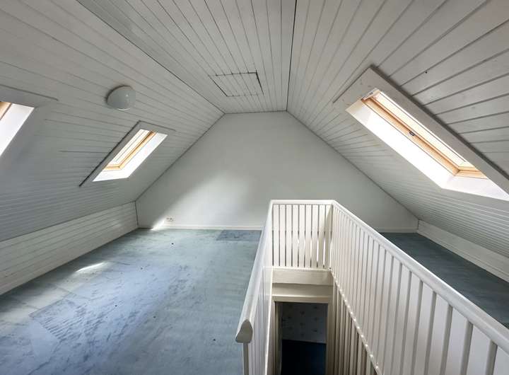 Im Erdgeschoss erwartet Sie ein großzügiger Wohn- und Essbereich, der dank großer Fensterflächen viel Tageslicht erhält und eine freundliche Atmosphäre bietet. Angrenzend liegt die Küche mit hellen Einbauten, die für ein angenehmes Ambiente sorgt. Das Obergeschoss verfügt über ein gut geschnittenes Schlafzimmer sowie ein kleines Durchgangszimmer, von dem eine Treppe ins ausgebaute Dachgeschoss führt. Das Badezimmer ist funktional gestaltet, verfügt über ein Fenster für Helligkeit und Belüftung und bietet auf kompakter Fläche alles für den täglichen Komfort. Die Böden sind überwiegend mit Teppich belegt, der nicht mehr dem aktuellen Geschmack entspricht. Insgesamt präsentiert sich das Haus gepflegt, hell und einladend – ein Ort zum Ankommen und Wohlfühlen