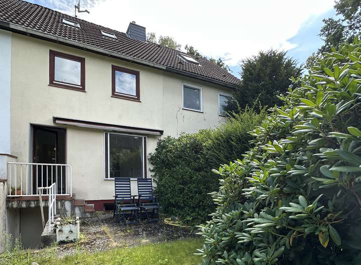 Auf einem etwa 154 m² großen, nach Westen ausgerichteten Grundstück steht dieses charmante Reihenhaus. Es verfügt über rund 61,6 m² Wohnfläche, ergänzt durch ca. 23 m² wohnlich ausgebauten Raum im Dachgeschoss sowie etwa 29,5 m² Nutzfläche im Vollkeller. Der Dachgeschossraum ist über eine feste Treppe erreichbar und mit Veluxfenstern ausgestattet. Mit 2,5 Zimmern plus dem zusätzlichen Raum im Dachgeschoss bietet das Haus optimale Voraussetzungen für Singles, Paare oder eine kleine Familie. Der Außenbereich besticht durch einen pflegeleichten Garten und eine einladende Terrasse - ideal zum Entspannen und Genießen.