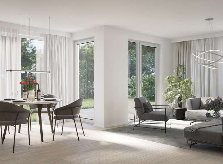 Das Gebäude wird in solider Mauerwerksbauweise errichtet und erfüllt alle Anforderungen gemäß GEG 2024. Fundamente und Bodenplatte werden in Beton ausgeführt. Die Außenwände sowie die tragenden Innenwände werden aus Kalksandstein bzw. Stahlbeton hergestellt. Die Geschossdecken und Geschosstreppen sind ebenfalls aus Stahlbeton gefertigt. Sie werden mit polierten Granitstufen belegt. Auf das Außenmauerwerk wird ein Wärmedämmverbundsystem (WDVS) aufgebracht.