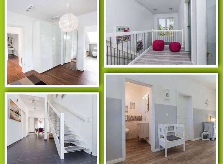 Dieses Haus zeichnet sich durch moderne Architektur und hohe Individualität aus. Baufamilien können nach eigenem Geschmack den Grundriss des Hauses variieren und zum Beispiel einen Wintergarten, Erker oder eine Loggia planen. Dadurch besteht die Möglichkeit, das Haus geräumiger zu machen und von außen die Giebelseite aufzuwerten. Mit einer Nettogrundfläche von ca. 217 Quadratmetern passt sich das Haus den Bedürfnissen seiner Bewohner an. Angaben zum Preis: inkl. Architektenleistung, massa-Vierfach-Schutz, 3-fach-Fensterverglasung, massa-Klima-Schutz-Wand, Freiraum-Upgrade