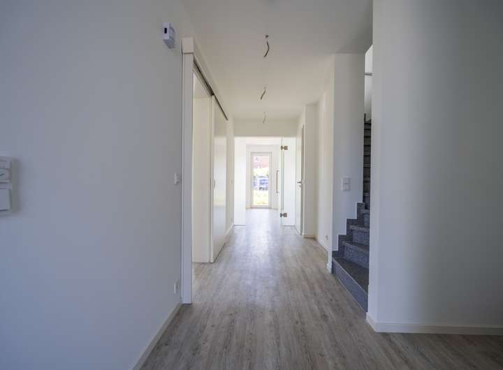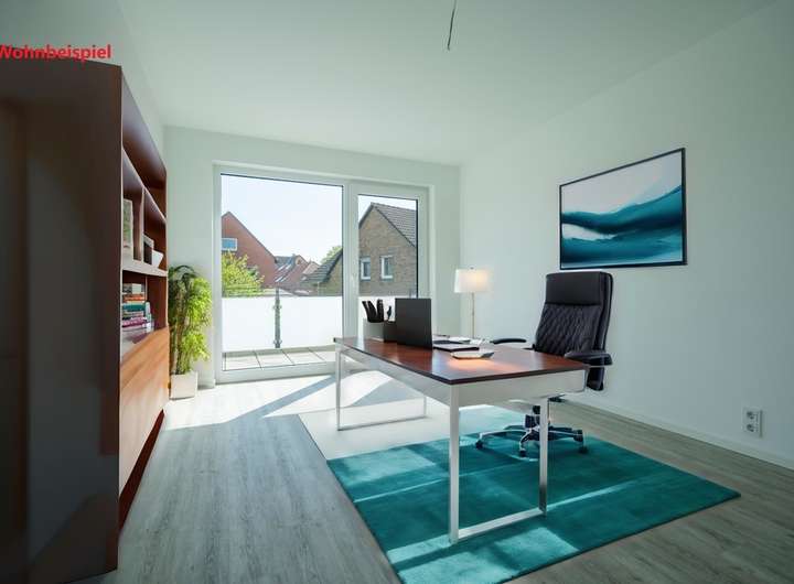 Das großzügige Raumangebot im Obergeschoss erstreckt sich über 3 Schlafräume sowie einen Arbeitsbereich und das hochwertige Vollbad. Ebenerdig erwartet Sie ein lichterfüllter Wohnbereich mit offener Küche sowie der HWR und ein Gäste- WC.