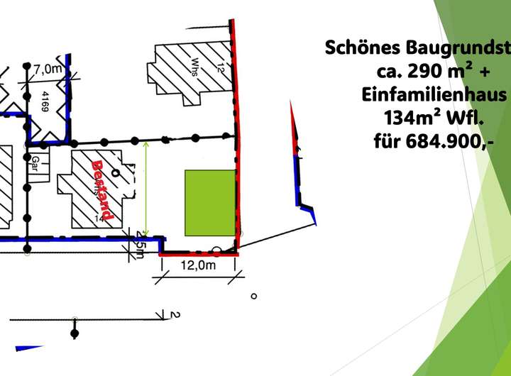 Eine erweiterte Bebauungsmöglichkeit - auf dem ebenen, großen sonnigen Grundstück ist gemäß Bebauungsplan gegeben. Nach Abriss und Teilung können hier drei Grundstücke entstehen.