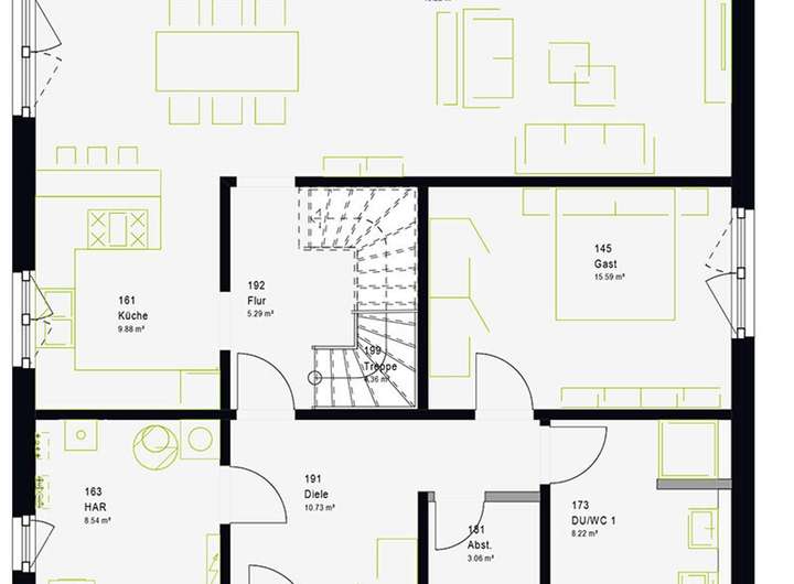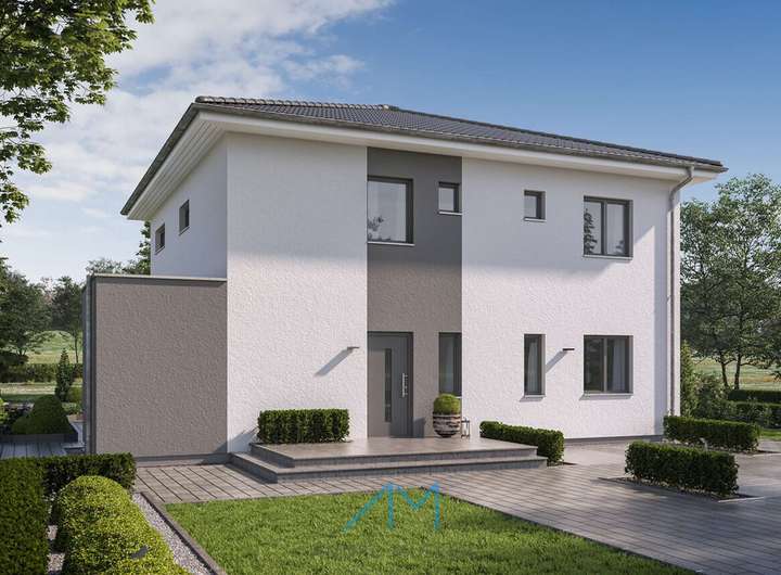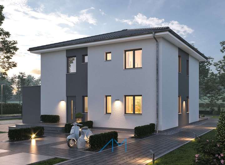 Entdecken Sie die Stadtvilla, ein echtes Raumwunder, das auf ca. 210,10 m² all Ihre Wohnträume wahr werden lässt. Diese Villa beeindruckt mit einer cleveren Raumgestaltung, angeführt von einer zentral integrierten Treppe, die nahtlos in einen weitläufigen Wohn-, Ess- und Küchenbereich übergeht. Hier können Sie Ihre Vorstellungen von einem perfekten Zuhause spielend leicht umsetzen. Im Obergeschoss erwartet Sie zusätzliche Freiheit für individuelle Gestaltung: Ein Elternzimmer mit begehbarer Ankleide und ein großzügiges Wohlfühlbad versprechen exklusiven Wohnkomfort. Die Stadtvilla - wo Raum auf Eleganz trifft und Wohnträume Realität werden.