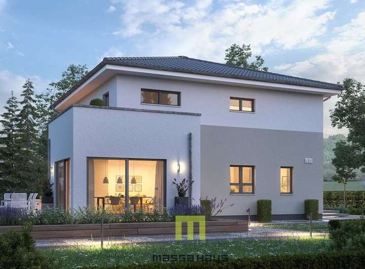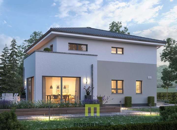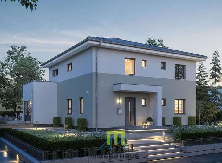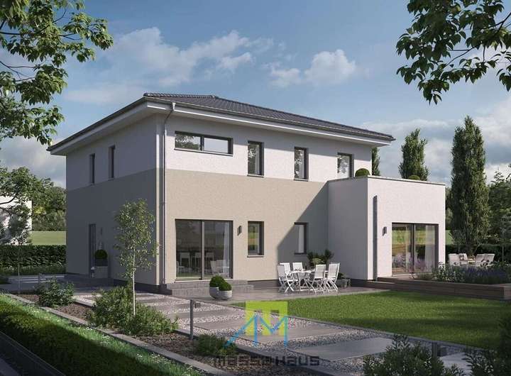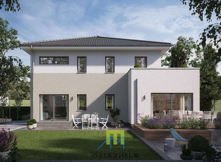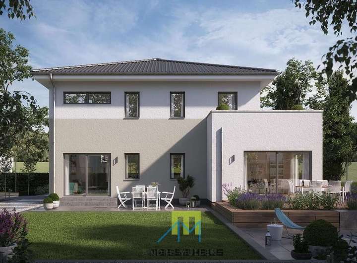 Dieses beeindruckende Mehrgenerationenhaus besticht durch seinen modernen, kubistischen Stil und bietet viel Raum für seine Bewohner. Der quadratische Grundriss und das formschöne Walmdach verleihen dem Haus einen einzigartigen Charakter.