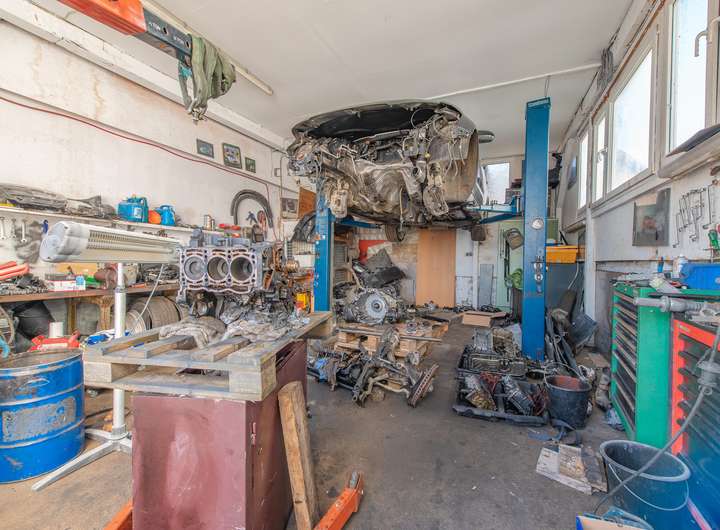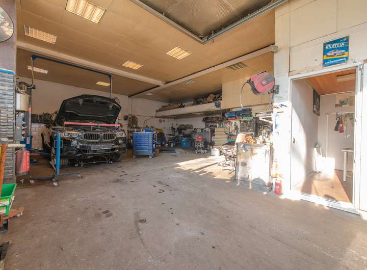 Das Grundstück ist aktuell mit einer Kfz Werkstatt samt Lackierkabine sowie einem Autohandel bebaut. Eine bestehende Sondergenehmigung ermöglicht die Fortführung dieser Nutzung. Zusätzlich befindet sich ein Mitarbeiterhaus mit drei Schlafzimmern, mehreren Badezimmern und einer Küche auf dem Gelände.